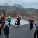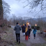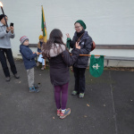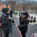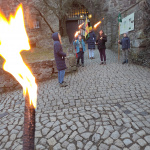 Besonders aufregend wird es für Kathi als wir schweigend mit Fackeln und Fahnen vor die Burg auf den Küchensöller ziehen und sie ihr Wölflingsversprechen ablegt. Nele nimmt sie daraufhin als Wolf in die Stammesmeute auf und überreicht ihr das grüne Halstuch, das sie von nun an zur Kluft tragen darf.