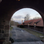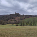 Voller Vorfreude werden am Freitag, den 13.02.26 alle Rucksäcke, Schlafsäcke, Wimpel und Essenssachen in den Bulli gepackt und Dennis fährt uns (Kathi, Kim, Lia, Emma, Linus, Eline und mich) Richtung Autobahn. Nur 1 ½ Stunden später können wir sie bereits aus dem Bullifenster sehen: die Jugendburg Ludwigstein, spätmittelalterliche Burg und Sehnsuchtsort der bündischen Jugend, zu der wir als Pfadfinder ja auch zählen. Hoch oben tront sie leider ein wenig wolkenverhangen.