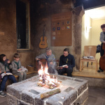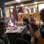 Nach einem leckeren Abendessen mit Wraps entzünden wir an der großen Feuerstelle im Speisesaal ein Feuer und beginnen, begleitet von Gitarre und Kontrabass ein paar Lieder zu singen um uns die Zeit zu vertreiben, bis wir ins Schwimmbad im Keller der Burg dürfen. Während die einen Plantschen und Toben, singen die anderen weiter am Feuer bis alle spät am Abend müde in die Betten fallen.