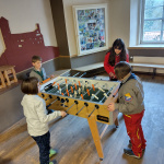 Nach einer Andacht und dem gemeinsamen Frühstück am nächsten Morgen führt uns Nele durch „ihre“ Burg, auf der sie gerade ihren Freiwilligen Dienst in der Denkmalpflege leistet. Wir erfahren viele interessante Details über den Bau, den Wiederaufbau, die Anfänge der bündischen Jugend und sogar über die Trennung und Wiedervereinigung Deutschlands und schauen von der Burg aus auf die Werra und hinüber nach Thüringen auf die Burg Hanstein. Es bleibt noch etwas Zeit zu Kickern, ehe uns die Burgküche mit leckerem Curry verwöhnt.
